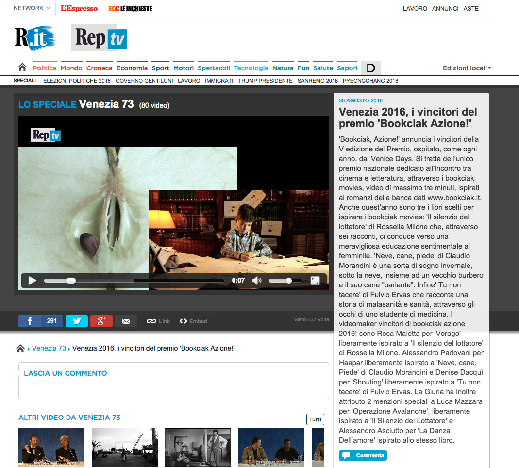 30 agosto 2016 vai alla pagina: video.repubblica.it/dossier/venezia-73/venezia-2016-i-vincitori-del-premio-bookciak-azione 'Bookciak, Azione!' annuncia i vincitori della V edizione del Premio, ospitato, come [...]