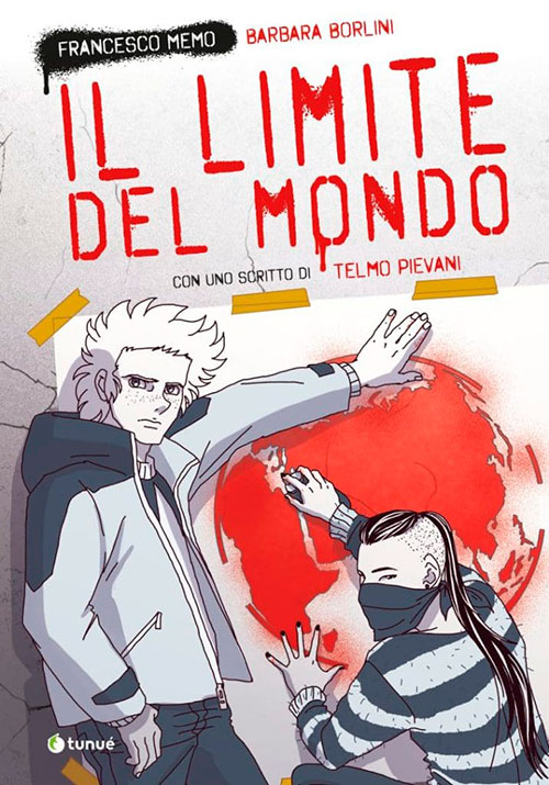 Il secondo titolo è Il limite del mondo di Barbara Borlini e Francesco Memo, per Tunué. Due copertine per due storie, diverse, ma collegate. Da una parte un ragazzo che vive nel suo rifugio in montagna insieme al nonno, mentre la grande miniera della CarbCap si mangia via via il territorio d’alta quota. Dall’altra un futuro prossimo in cui il mondo è drammaticamente diviso tra ricchi e poveri, gli uni cinicamente al riparo dalle tragiche conseguenze dei mutamenti climatici, gli altri nell’inferno della siccità e delle ondate di calore. In entrambe le storie saranno i giovani protagonisti a prendere in mano l’inevitabile.