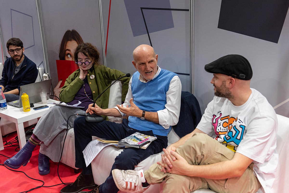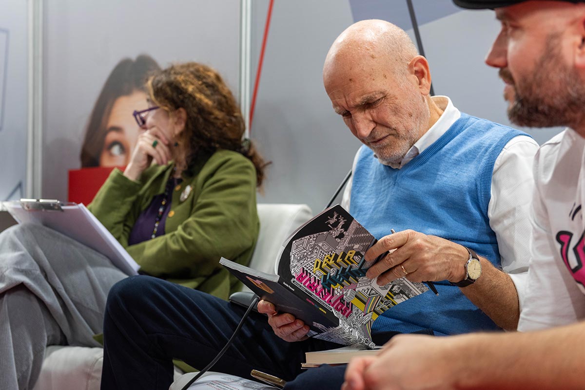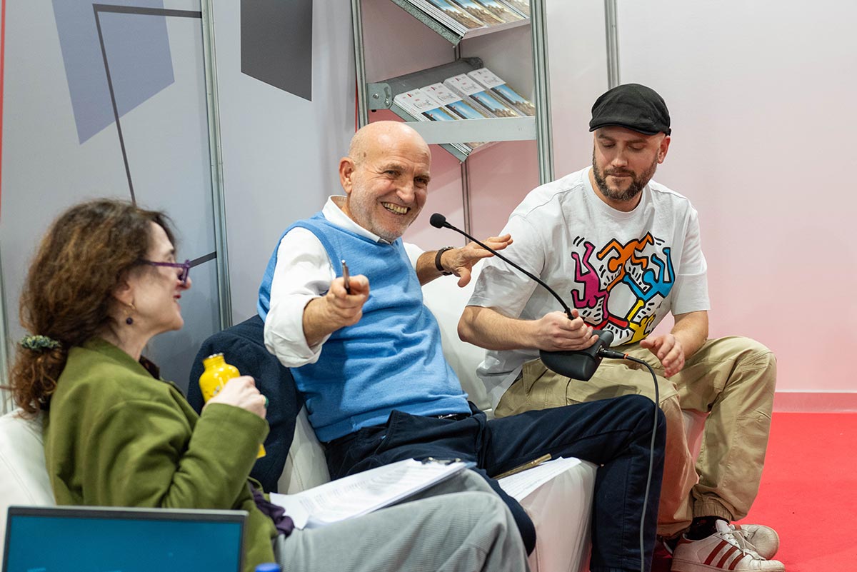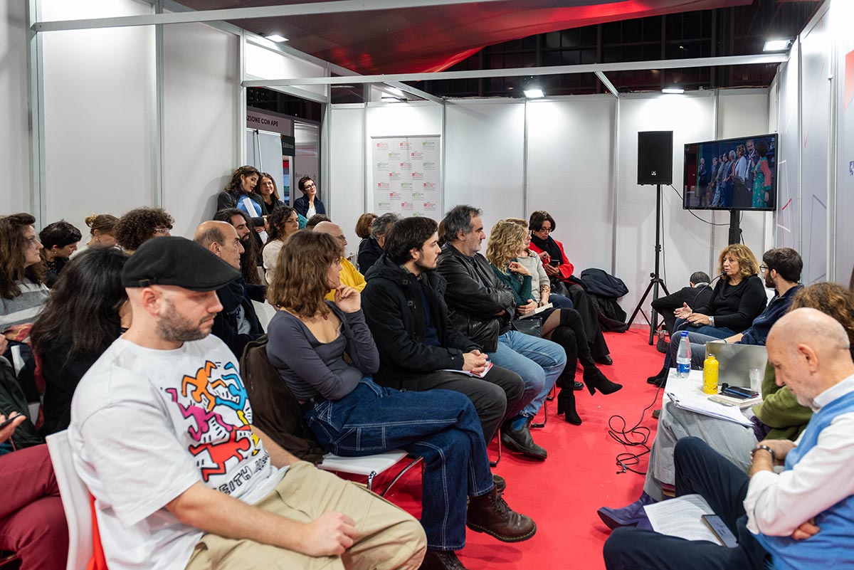 Presentata il 7 dicembre a “Più Libri più liberi”, negli spazi CEPELL la III edizione di Bookciak Legge dal tema: la pace quotidiana. Marino Sinibaldi è il presidente di giuria, affiancato da Laura Luchetti e Roberto Scarpetti. Il ricordo di Tino Franco grande compagno di viaggio appena scomparso con i figli Francesco e Norma. Tra gli ospiti – e nelle foto – anche Laura Delli Colli, Silvia Scola, Davide Passoni, Gianluca Arcopinto, Alessandra Pescetta e i tanti amici della carovana di Bookciak